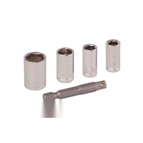 1 juego de llaves de vasos. Atornilladores de batería y taladradoras de acero al cromovanadio. Vástago hexagonal 1/4" (6,35 mm), según DIN 3126-E6.3. Incluye 1 adaptador, 6 mm (1/4"), 50 mm. Tamaño: SW 7, 8, 10, 13.