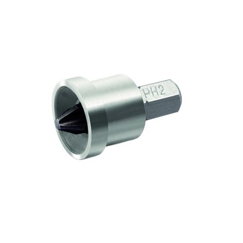Adaptador para tornillos. Convierte taladro en un adecuado atornillador. Adapta los tornillos a la profundidad correcta. Anillo de acero para proteger la placa. Punta magnética para mantener el tornillo en su sitio.