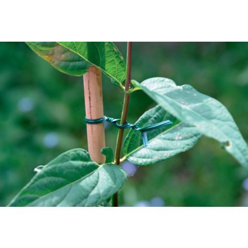 Tira plástica con alambre. Atadura plastificada muy útil para las tareas del jar dín. Permite atar las plantas a los tutores para guiarlas. Resistente y flexible . Fabricado en acero plastificado. Presentación enbobinas que incorporan un sist ema de recorte.