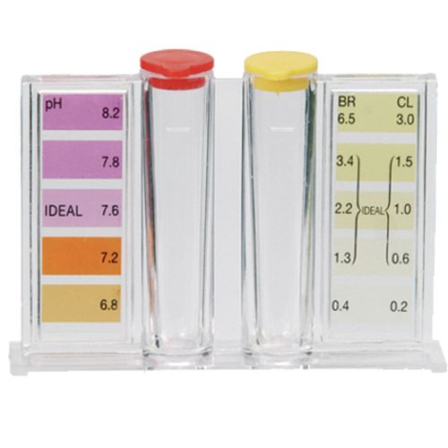 ANALIZADOR MANUAL DE PH Y CLORO PARA PISCINAS. Accesorio imprescindible para man tener los niveles óptimos de cloro/bromo y pH y obtener un agua en perfectas con diciones para el baño. Incluye un práctico estuche que permite almacenar el comp arador y los botes de reactivo. Fácil de utilizar, permite obtener los resultado s en segundos y comprobar visualmente el nivel de cada parámetro. Apto para todo tipo de piscinas (enterradas y elevadas) y spas de hidromasaje.