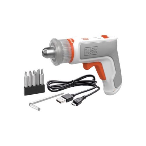 Atornillador Monta-muebles HEX DRIVER Porta-accesorios patentado y diseñado para accionar varios tamaños de llaves hexagonales incluidas en los muebles prefabri cados. Permite montar muebles prefabricados y otros artículos para el hogar hast a 3 veces más rápido que una herramienta manual. El porta-accesorios tambiénperm ite adaptar diferentes accesorios para atornillar como puntas estándar. Intuitiv a función reversible para atornillar y desatornillar. Diseño ergonómico con recu brimiento engomado que reduce la fatiga cuando se utiliza la herramientade forma intensiva. Gatillo de gran tamaño para un uso más cómodo ya sea con uno o dos d edos. La luz LED integrada proporciona iluminación a las zonas poco iluminadas c omo el interior de los armarios o debajo de las mesas. Puerto micro-USB para may or versatilidad de carga. Incluye 5 puntas para atornillar, llave hexagonal y ca ble micro-USB