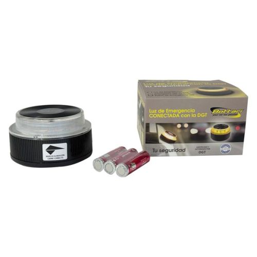 Baliza de emergencia V16 con geolocalización certificada conectada a la platafor ma DGT 3.0. Permite alertar automáticamente a la DGT en caso de incidencias, tra nsmitiendo la ubicación del vehículo en tiempo real, y aumentando la seguridad e n carretera al ser visible por otros conductores, reduciendo el riesgo de atrope llos y accidentes. Incluye servicio de datos sin costes adicionales, garantizado hasta 2038. Funcionamiento autónomo con 3 pilas AA, incluidas.