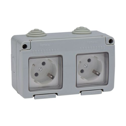 Base enchufe electricidad schuko doble estanco tt 10amp250v gris famatel