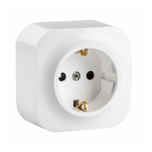 Base enchufe electricidad superficie schuko tt abs blanco legrand 782420