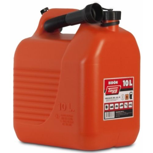 Bidón 10 litros cánula Material HDPE. Presión hidráulica 200 kPa. Contoma de air e para garantizar un vertido uniforme. Homologado para transporte de mercancías peligrosas, incluido hidrocarburos. Cumple normasADR, RID, IMDG e IATA/OACI.