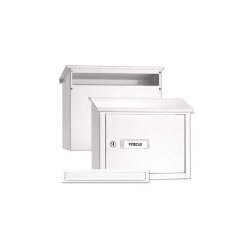 PACK Boca cartas + Recoge cartas. De acero Galvanizado, ideal para exteriores. Dimensiones (mm):boca cartas 342 x 73. recoge cartas 302 x 345 x 138. Con pintura poliéster anticorrosión. Color blanco