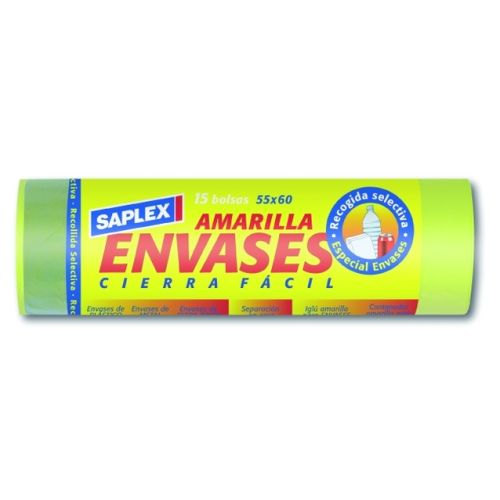 Bolsa basura envases 55x60 cm 15 pz plastico amarilla saplex