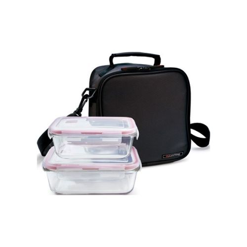 Bolsa porta-alimentos con cremallera doble, asa de mano con refuero ybandolera r egulable y extraible. Incluye un bolsillo de rejilla interior para colocar los c ubiertos, la servilleta o efectos personales. Incluye dos contenedores de vidrio de 570 ml y 870 ml. Los contenedores son de vidrio de borosilicato, un material limpio, seguro y resistente.Contenedores totalmente libres de BPA.