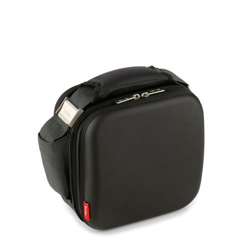 Bolsa porta alimentos de diseño moderno con pared rígida y acabado satinado más elegante. Interior aislante. Cinta colgadora extensible. Unabolsa porta alimento s y dos contenedores herméticos (uno de 0,75 L yuno otro de 0,5 L).