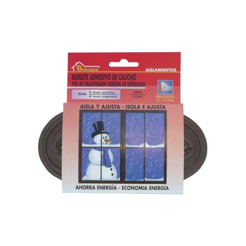 Burlete puerta/ventana adhesivo perfil en "e" 9mmx06mt caucho marron burcasa 107200