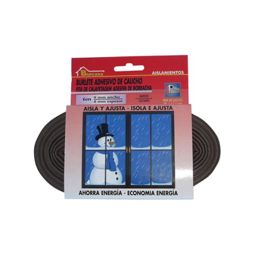 Burlete puerta/ventana adhesivo perfil en "p" 9mmx06mt caucho marron burcasa 107180