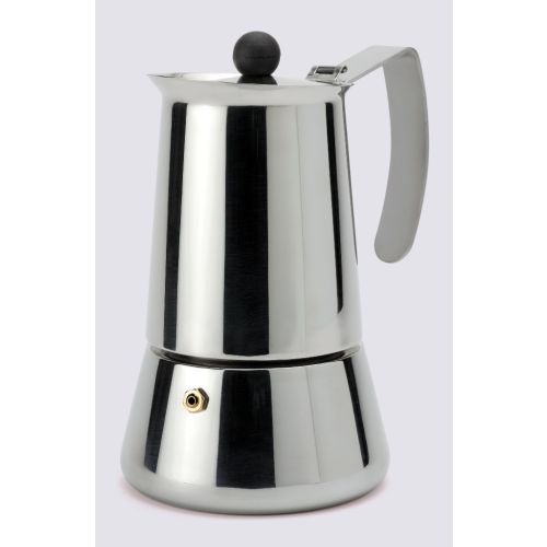 Cafetera en acero Inoxidable 18/10. Acabado exterior brillante. Válida para todo tipo de cocinas, incluida la de inducción. 4 tazas.
