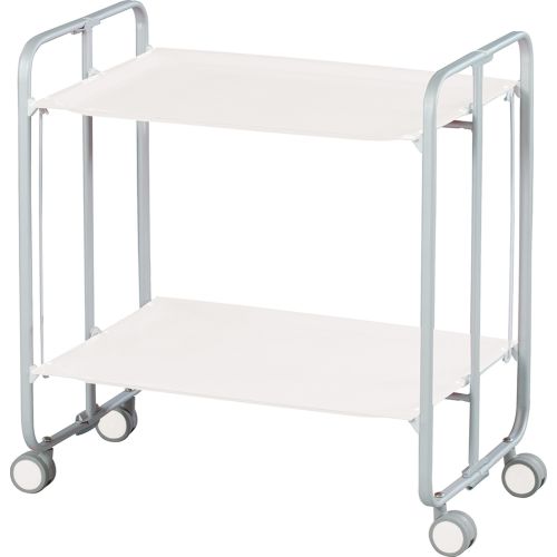 72x65,5x43 cm. Estructura acero lacado gris y bandejas en blanco. Cerrado: 84x9 cm