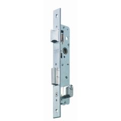 Cerradura de embutir para puertas de madera. Distancia entre ejes 85 mm. Entrada s de 40/50/60/70 mm. Nueca de 8 mm. reversible. Cilindroeuroperfil TE-5 con llav es de acero niquelado. El cilindro acciona la palanca (2 vueltas) y el picaporte . La nueva acciona el picaporte.