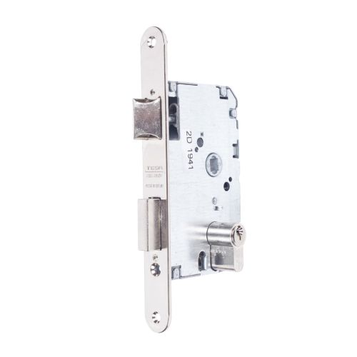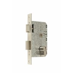Cerradura de embutir en madera cilindro pera entrada de 50 mm palanca y resbalón canto redondo niquelada