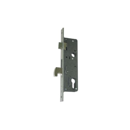 Cerradura 7415 de embutir para puertas de perfil. Resbalón reversible y gancho. Frente de 238x22x2,7mm. Entrada 23 mm, distancia entre ejes 85 mm. Cilindro leva corta. Frente en acero cromado.