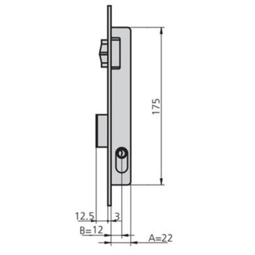 Cerradura metalica embutir rodillo y palanca cilindro niq. 22x12mm niquel 1963v/