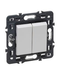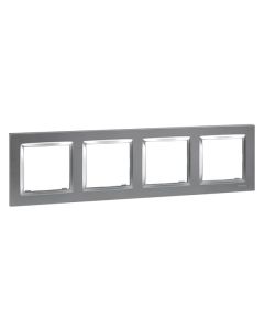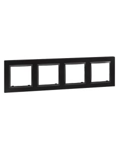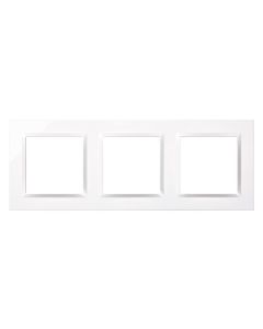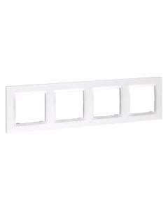 · Gama Simon 10. · Acabado blanco. · 4 elementos. · Para interior. · Montaje en pared. · Alineación horizontal y vertical. · Apto para pulsador, conmutador, enchufe Schuko. · Material plástico. · Medidas marco 29,7 x 8,4 cm. · Protección tipo IP20.