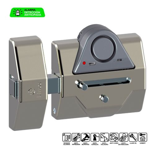 Cerrojo alta seguridad con alarma reforzado cromo mate lince 7930rsa-cm