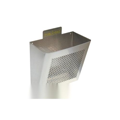 Cesta de publicidad, Dimensiones (mm): 305 x 320 x 190. Colores disponibles: Cuerpo negro y rejilla ocre/ cuerpo y rejilla plata/ cuerpo y rejilla negra. Tamaño idóneo para grandes volúmenes de publicidad