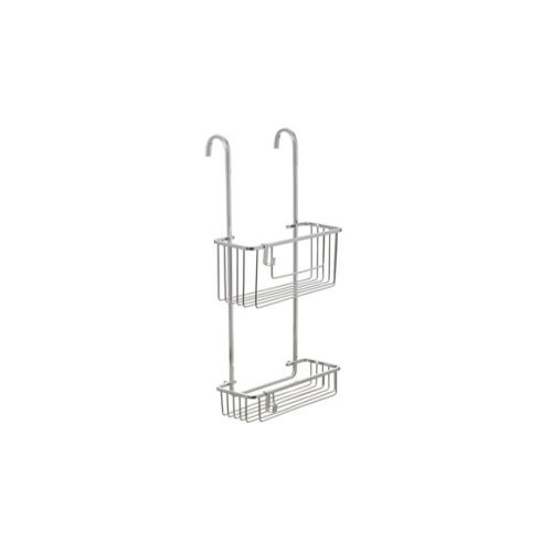 Cestillo con colgador para mampara fabricado en aluminio acabado brillante, comp uesto de 2 cestos (alto y bajo) y con 2 colgadores móviles útiles para cogar acc esorios de ducha con cuerda