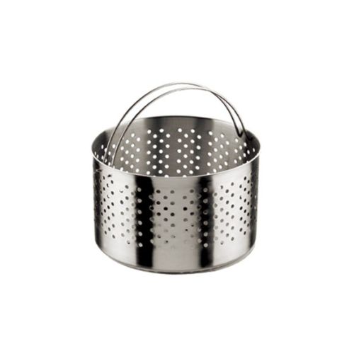 Cesta perforada-colador para ollas y cacerolas. Diámetro 21cm, altura 13cm, acero 18/10, apto para uso alimentario. Ideal para utilizar dentro de las ollas y cacerolas, la utilidad es escurrir el agua una vez que el producto este cocinado y utilizando el soporte se puede cocinar al vapor.
