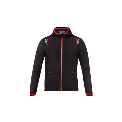 Chaqueta cortavientos ligera, con capucha; en tejido repelente al agua. COMPOSIC IÓN: 100% poliéster - 100 gr / m2. Tejido de poliéster suavey ligero; repelente al agua. Cremalleras recubiertas con tiradoresde goma. Puños y parte inferior co n elásticos.