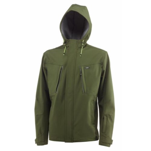 Softshell / Cortavientos. Color Verde. SERIE KASUAL. Chaqueta softshell de color verde con capucha con diseño innovador de corte slim fit. Cierre con cremallera frontal y tapeta con 4 bolsillos frontales todos ellos cerrados con cremallera detalles reflectantes en los bolsillos del pecho. Composición : 94% poliéster + 6% Spandex. 310 g. Talla XXL