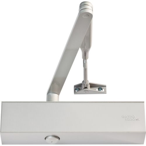 Cierrapuertas con frenado a la apertura integrado, velocidad de cierreajustable en dos diferentes zonas y golpe final regulable. Fuerza decierre regulable EN 3- 6, color negro (no incluye brazo)