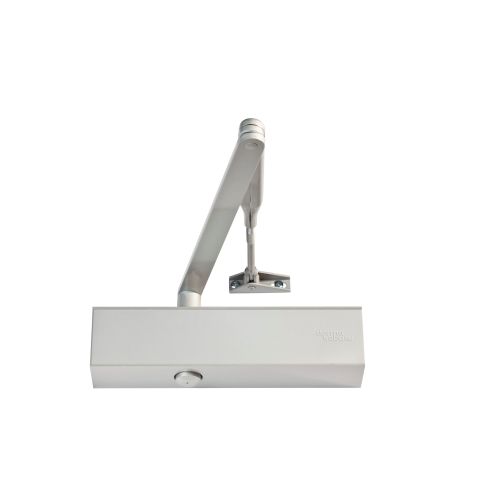 Cierrapuertas con frenado a la apertura integrado, velocidad de cierreajustable en dos diferentes zonas y golpe final regulable. Fuerza decierre regulable EN 3- 6, color plata (no incluye brazo)