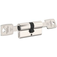 Cilindro de alta seguridad HS-K Anti-Bumping, antirrotura y llave incopiable. 11 pitones activos / Reversible Doble Embrague Protección anti taladro en cuerpo y rotor Sistema antibump / Sistema anti rotura con puente de acero Llave incopiable y sistema patentado Tarjeta de propiedad / llave de alpaca Permite amaestramientos integrados, incluyendo buzones y otros elementos con una absoluta fiabilidad 30 x 30 mm. Latón