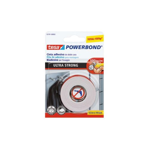 La cinta de doble cara tesa Powerbond® Ultra-strong permiten fijar varios objeto s de forma rápida, segura y duradera tanto en exteriores como en interiores * Id eal para su uso en interiores y exteriores* * Sujeción fuerte * Soporta hasta 6k g** por tira * Fija fuerte en superficies lisas y firmes *No resistente a los ra yos UV. Proteger del contactodirecto con agua. **Para objetos planos con un espe sor de hasta 10mm yen superficies lisas y firmes.