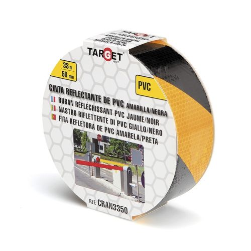 Cinta adhesiva señalizacion 50mmx 33mt pvc negra/amarilla reflectante target cran3350