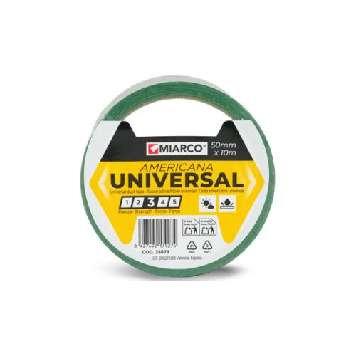 La cinta americana Universal es la solución eficaz para reparaciones de emergenc ia. Su versatilidad la convierte en una herramienta multiusos ideal para aplicac iones sencillas. Además de su versatilidad, esta cinta económica ofrece altas pr estaciones. VENTAJAS Duradera y adaptable a superficies irregulares Imperme able Fácil de cortar Alta adhesión y gran resistencia" La cinta americana Uni versal es la solución eficaz para reparaciones de emergencia. Su versatilidad la convierte en una herramienta multiusos ideal para aplicaciones sencillas. Ademá s de su versatilidad, esta cinta económica ofrece altas prestaciones. VENTAJA S Duradera y adaptable a superficies irregulares Impermeable Fácil de cortar Alta adhesión y gran resistencia