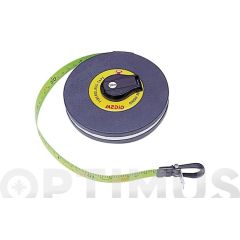 Cinta métrica de 30 m de fibra de vidrio con carcasa de ABS anti‐choque. Manivel a plegable. Homologada clase de precisión III de acuerdo con la normativa MID. M edidas: Ø160 x 20 mm, peso: 468 gr.