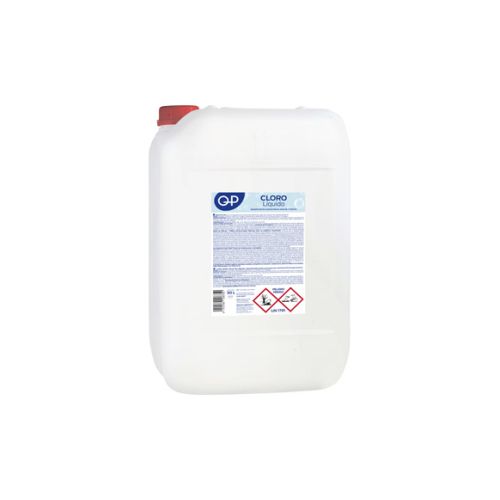 CLORO LÍQUIDO. Hipoclorito sódico 150/180 en origen. Capacidad 30 kgs. Arranque : 1,8 kg por cada 50 m³ de agua. Diariamente: 1,2-1,8 por cada 50 m³ de agua.