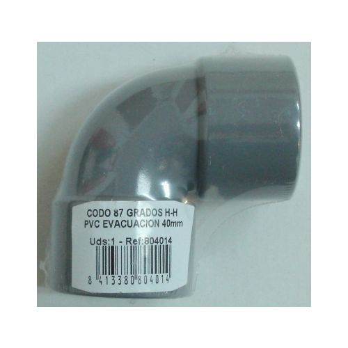 Codo evacuacion h-h 87º 40mm pvc s&m