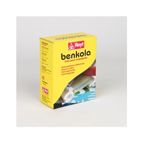 COLA EN POLVO PARA PAPEL PINTADO BENKOLA 150GR. Cola en polvo para encolar pape les pintados. Mezclar para su preparación de 3 a 6 litros de agua por paquete. U so en papeles pintados o de vinilo con dorso de papel o tejido. CARACTERÍSTICAS Fácil disolución en agua fría. Basado en polímeros naturales. Con fungicida. CARACTERÍSTICAS TÉCNICAS Viscosidad: Alta. Aspecto: Sólido en polvo.