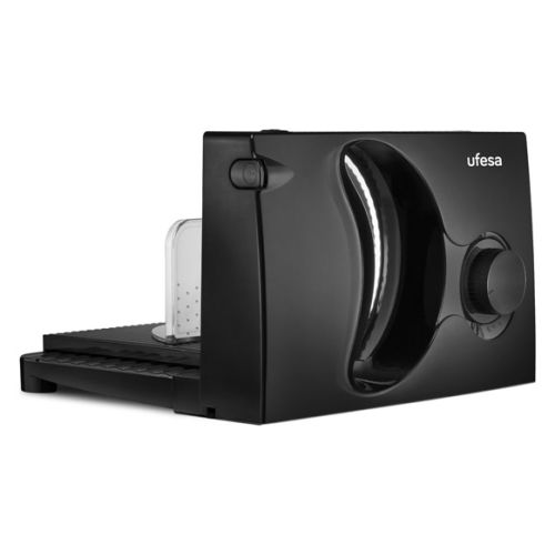 Disco desmontable de acero inoxidable con diámetro de 170 mm para cortar aliment os como queso, fiambres, pan, verduras, etc. Regula el grosor desde 0 a 15mm pa ra conseguir el grosor de corte deseado. Cuenta con bandeja para alimentos plega ble con base extraíble para mayor comodidad. 150 W. Botón de seguridad Material del pie: acero inoxidable Material del cuerpo del producto: plástico de alta c alidad Medidas: 12,2 x 24,1 x 37 cm. Peso 2,3 Kg.