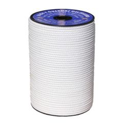 Interior trenzado y exterior de poliamida blanco brillante. Alta tenacidad. Muy buena resistencia al roce. Flexible y muy suave al tacto. Larga duración a la intemperie. Para tendederos de ropa, efectos navales, extracción de bombas de los pozos. Madejas de 20 metros
