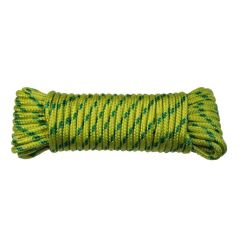 Interior trenzado y exterior de poliamida blanco brillante. Alta tenacidad. El cordón bicolor lleva un 25% de color en su exterior. Muy buena resistencia al roce. Flexible y muy suave al tacto. Larga duración a la intemperie. Para tendederos de ropa, efectos navales, extracción de bombas de los pozos. Madejas de 10 metros