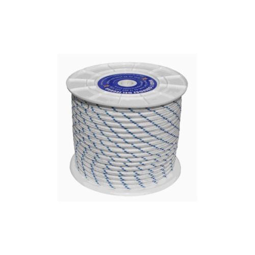 Cuerda fijacion trenzada tipo driza 08mm 100 mt nylon blanco/azul hyc 5110080100