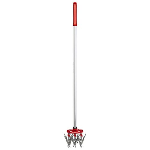 3 posibles configuraciones de púas para limpiar, airear y labrar la tierra.Fácil de ajustar: tres juegos de púas giratorias desmontables. Las púas deacero grand es rompen rápidamente el suelo y se limpian solas. Placa paraapoyar el pie de me tal.
