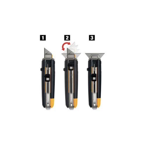 Grado profesional. Herramienta 2 en 1 que combina un raspador y un cuchillo mult iusos.Incluye 5 cuchillas universales ToughBuilt que son fáciles de cambiar y fu ncionan con casi todos los demás cuchillos utilitariosEmpuñadura robusta y antid eslizante con botón de liberación de seguridadUtiliza el mecanismo patentado deT oughBuilt para transformarse sin esfuerzo de una navaja multiusos a un raspadorc on solo presionar el pulgarEl reemplazo de la cuchilla es fácil, solo presioneun botón y tireRealiza todas las tareas que un raspador y un cuchillo multiusospue den realizar, todo en una sola herramientaEl mango de goma antideslizante ergonó mico y resistente es duradero y fácil de agarrar, con una cresta protectorapara los dedos para mayor seguridad al cortarIncluye un abrelatas de pintura integrad o y una cuerda de aperturaCuchillas de repuesto Cuchillas de recambio ref.971049 9
