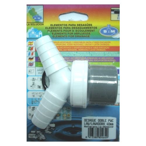 Desague evacuacion lavadora doble 40mm pvc s&m 804649