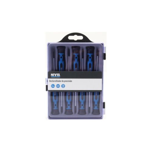 Estuche contiene 7 destornilladores cromo vanadio de largo 55 mm: 2 planos: 2,5 - 3 2 philips: PH0 -PH00 3 torx: 8 - 9 - 10