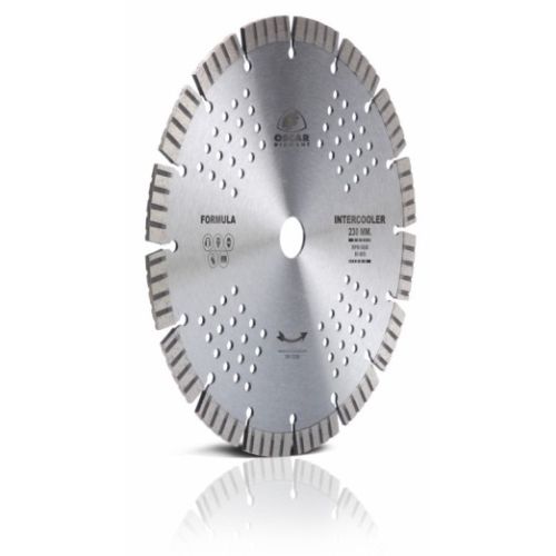 Disco de diamante profesional para Materiales construccion general, Fórmula intercooler ø230x22,2 H12 Aplicaciones todo tipo de materiales. Altura 12 mm. Almenado. Disco ventilado para mayor tiempo de corte continuo.