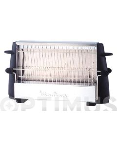 - Agregar a los favoritosMedidas del producto: 355x210x70mm. Se adapta a hasta 4 rebanadas a la vez, tues ta un lado a la vez. 2 tubos de cuarzo con elemento calefactor. Interruptor de e ncendido/apagado. Tostado de 6 niveles. Luz indicadora LED para el estado de tra bajo. Material: acero inoxidable, revestimiento en cromo, chapa galvanizada y pl ástico polipropileno21,95 €