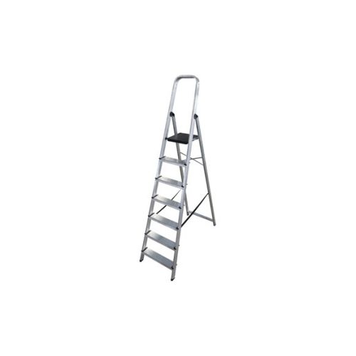 Perfil: 40x20 mm. Altura hasta plataforma: 144 cm. Altura máxima de trabajo: 3,4 4 m. Plegada: 218 alto, 55 ancho y 10 fondo (cm). Peso escalera: 5,50 Kg. Peso m áximo: 150 Kg (cumple norma EN 131).