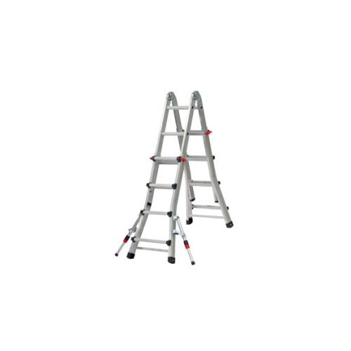 Escalera telescópica multifunción profesional de aluminio. Compacta, robusta y p ráctica. Probablemente la escalera más versátil del mercado al permitir trabajar en tijera, extendida y con desnivel, incluso en superficies irregulares, gracia s a su innovador sistema antivuelco. Bisagras multiflex, ancho interior de 300mm y cómodos peldaños de 30x30mm. Certificada segun normativa EN 131.